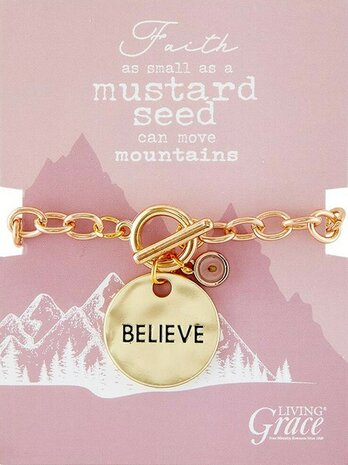 Deze mosterdzaadsieraden kunnen gedragen worden als een dagelijkse herinnering aan het belang van geloof. Materiaal: Zilver/Goudplaat – armband maat 17,8 cm – hanger van 2,5 cm Een geloof zo groot als een mosterdzaadje kan bergen verzetten