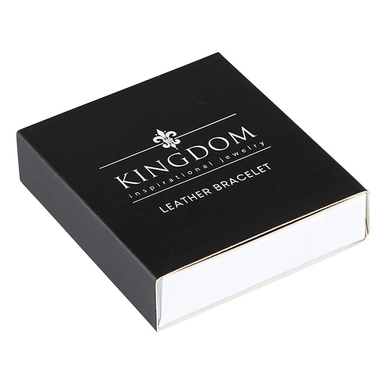 Materiaal: zink/legering kunstleer. Maat: 20.3cm verstelbare armband. Wordt geleverd in een zwart/witte doos.