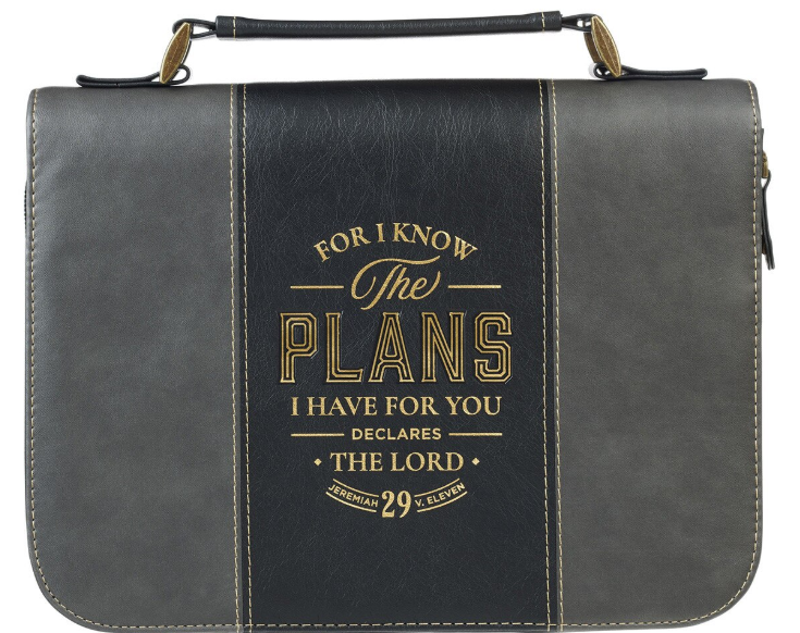 The exciting message of The Plans Black and Charcoal Faux Leather Classic Bible Cover will comfort your graduate as he embarks on his college journey. This gorgeous Bible case will remind him that God has a good plan for his life.