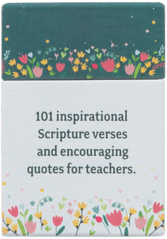 Inside the 101 Blessings for a Great Teacher Box of Blessings, you will find 101 double-sided cards with an inspirational Scripture verse on one side and an uplifting quote or phrase on the other. The small cards inside the box cycle through 3 designs that include bright pastel crayons, florals, and floral swags. Each of the 51 double-sided cards has an inspirational Scripture verse on one side and an uplifting quote or phrase on the other, providing a variety of beautiful designs and sentiments to choose from.
