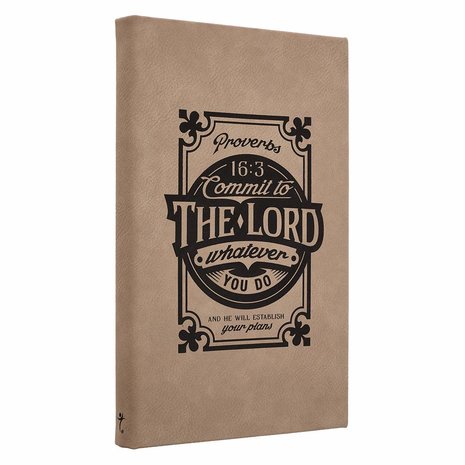 "Commit to the Lord whatever you do, and he will establish your plans." Proverbs 16:3 Let this powerful Scripture verse be a reminder to you daily as you commit your plans to the Lord. Perfect for a recent graduate or job seeker, this journal serves as a tool to document plans, prayers and blessings. Encourage someone special in your life to focus on the Lord by giving this noteworthy journal as a gift on a graduation or birthday. This Proverbs 16:3 journal is uniquely made with a laser engraved design. The contemporary design layout makes it an appealing option for any age. The laser engraved faux-suede material is wrapped around a hardcover. This journal also includes a ribbon page marker and presentation page for gift-giving.