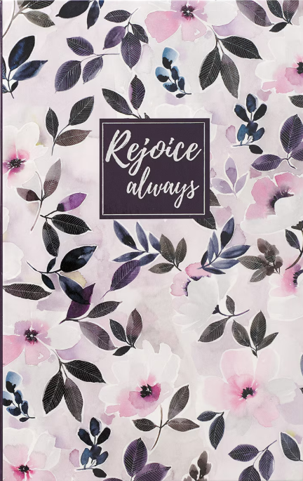 These lovely shades of pink and lavender flowers on the cover of the Rejoice Always Flexcover Journal will be a cheerful greeting as you start your day in God's word. Journal about inspiring Bible verses, blessings in your life and prayers that are laid on your heart. Take this personal journal to church or Bible study and record encouraging notes. The Scripture verse from Psalm 118:24, "This day belongs to the Lord! Let’s celebrate and be glad today," printed on the back cover will remind you to celebrate and be joyful throughout the day. The Rejoice Always Flexcover Journal has a printed heavy card stock cover with high glossy texture and silver foiled title. It contains 128 lines pages for journaling or note-taking with a Scripture verse at the bottom of each page. A presentation page was added at the front of the journal for a personal message when giving as a gift.