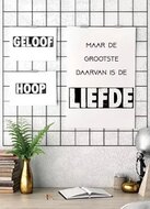 Kaart met de tekst: "Geloof, hoop, maar de grootste daarvan is de liefde."