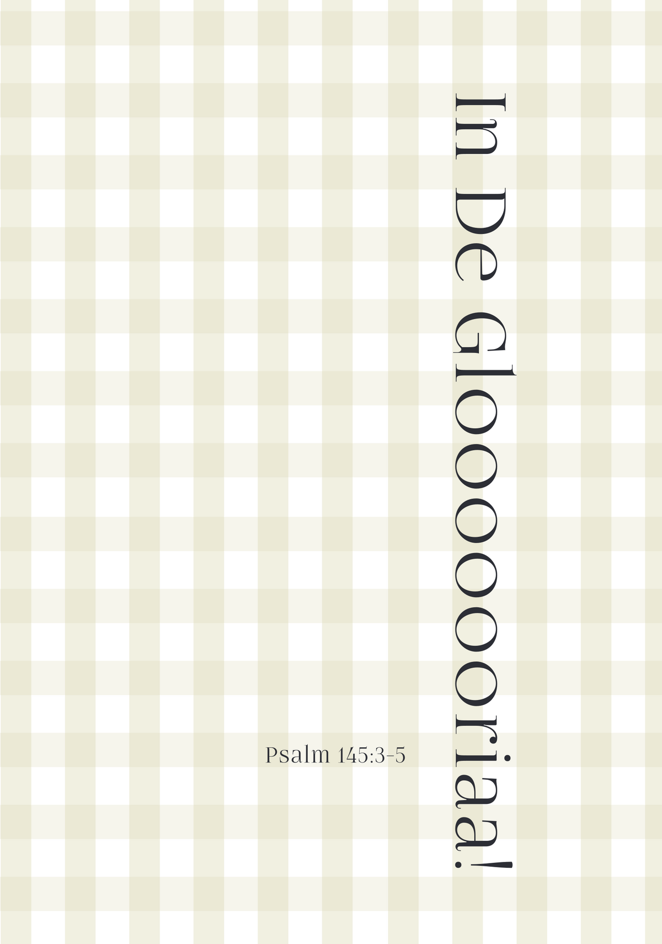 Christelijke enkele kaart aan de hand van Psalm 145:3 "In de Glooooooriaa!" gedrukt op duurzaam en stevig 300 grams papier met een matte look.