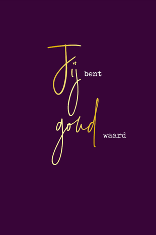 Luxe kaart uit de serie ‘Schrijven is Goud’, bedrukt met prachtig goudfolie. Tekst: ‘Jij bent goud waard’. Enkele kaart met envelop, op A6 formaat.