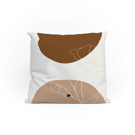 In de bruine en poederroze cirkels zie je een subtiele papaver bloem (klaproos) getekend.