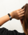 Elastisch armbandje in one size. De kralen zijn zwart met witte letters. Op dit armbandje staan de letters 'NF', het verwijst naar de woorden 'Never Forsaken'. Never forsaken verwijst naar de Bijbeltekst in deuteronomium 31:8
