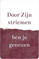 Leuk minikaartje met de tekst ‘Door Zijn striemen ben je genezen’. Perfect om een persoonlijke boodschap toe te voegen aan je cadeau of om een liefdevolle boodschap aan een geliefde te schrijven. De kaarten hebben een blanco achterzijde, zodat deze goed beschreven kan worden.
