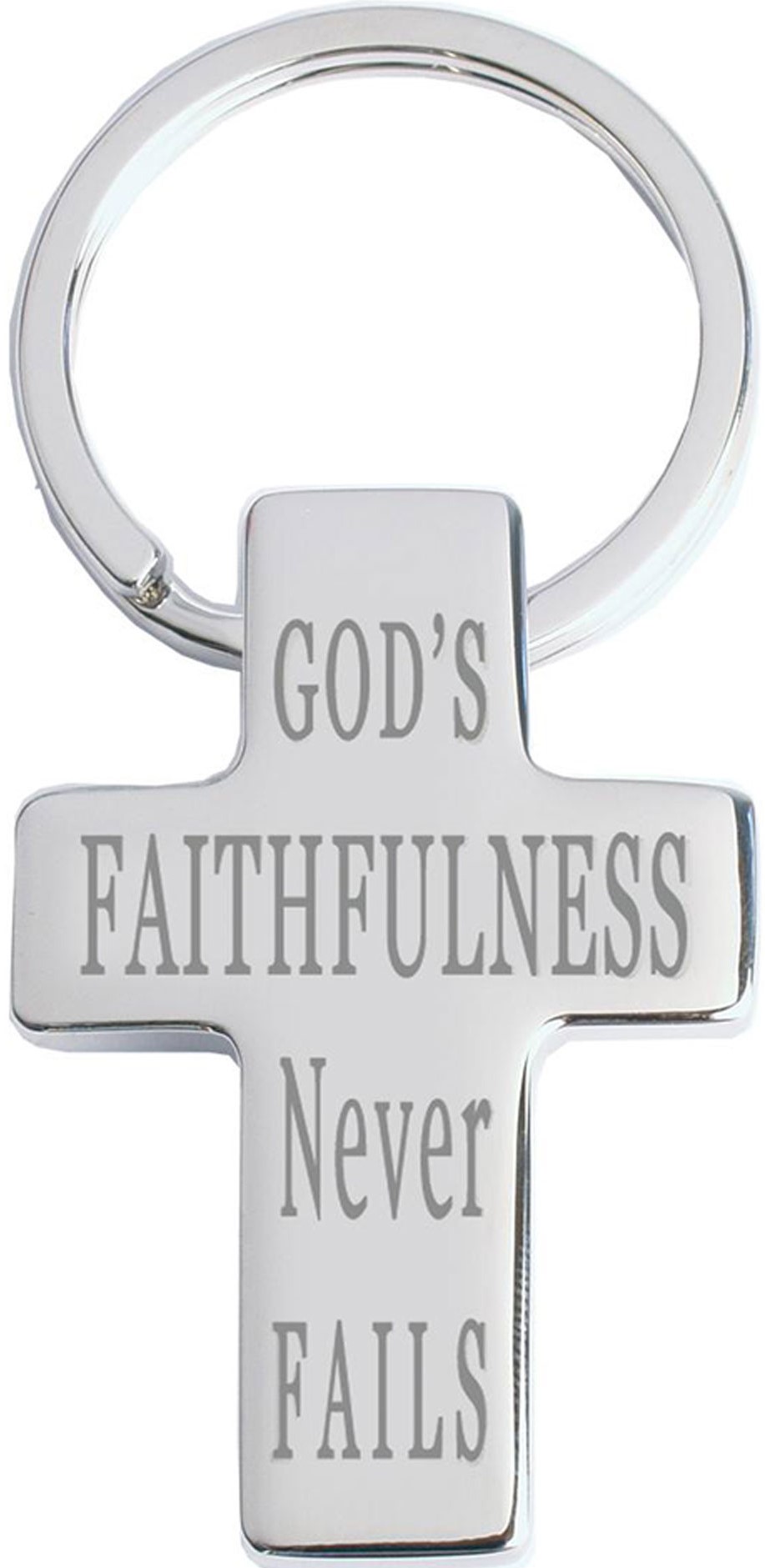 Our gleaming Christian Cross Keyring comes to you gift-ready - nicely seated in its own cross embossed tin gift box. The handsome 2" cross is etched with the reminder that "God's Love Never Fails". The cross has a substantial feel and is attached at its back to a stainless steel key ring. Medallion: 2 Inch Length (5 cm)