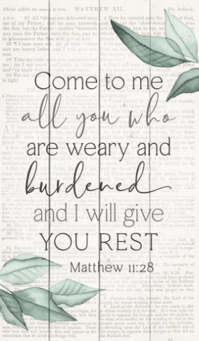 Come to me all you who are weary and burdened, and I will give you rest. Matthew 11:28