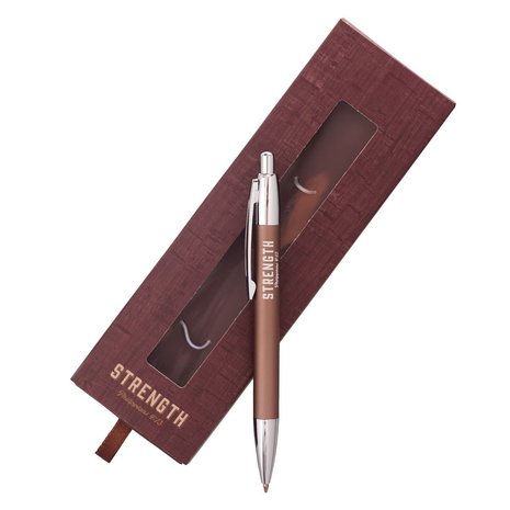 The Strength Gift Pen - Philippians 4:13 makes a great Christian gift for any man who is growing on his faith journey. Whether he's heading to college, moving to a new city for a job or starting graduate school, The Strength Gift Pen is an ideal gift when he's jotting down notes in class or Bible study, journaling or studying for exams. The Scripture reference of Philippians 4:13 on the Christian gift pen will remind him to stay strong.