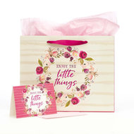 Grote cadeautas met de tekst Enjoy the little things. 3-delig: cadeautas, vloeipapier en kaart.