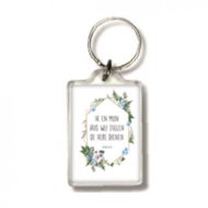 Sleutelhanger met de tekst 'Ik en mijn huis wij zullen de Here dienen'.