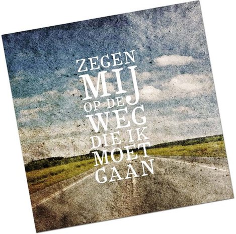 Enkelzijdige kaart van Dagelijkse Broodkruimels met tekst 'Zegen mij op de weg die ik moet gaan'.