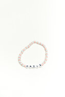 Elastisch armbandje in one size. Op dit armbandje staat Oasis. Verkrijgbaar in verschillende kleuren en varianten. De opbrengst gaat naar Oasis. Meer info? Check www.maasbach.nl/oasis/