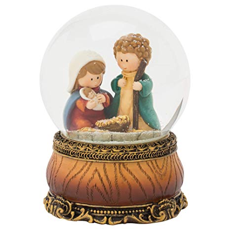 Sneeuwbol van 8,9 cm hoogte. Jozef, Maria en Baby Jezus.